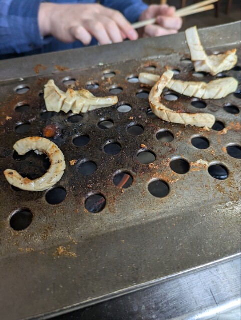 醤油ダレ〜ニンニクが効いています。隣は塩焼用のカボス果汁