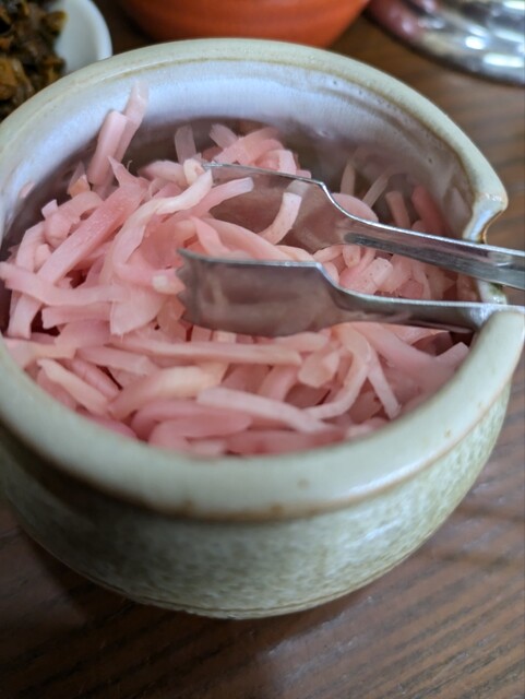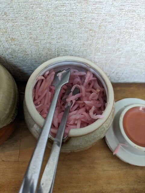 紅生姜 卓上には後、ゴマと胡椒だけ
