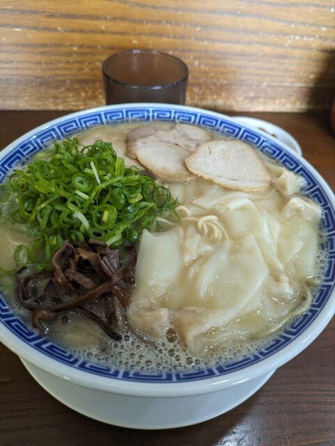 喉越しのいい麺❗コクがあり、後を引くスープ❗モチモチしたワンタン❗木耳とネギがいいアシストをしています。ちょっとチャーシュは硬いのですが…それを補う総合力の高いラーメン❗