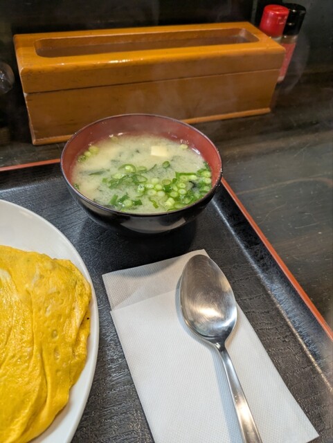 でもオムライスは僕の中では最強❗️手作りか分からないけど、ケチャップの美味さ、フワフワな玉子口直しの味噌汁と最強❗️な一品です⋯
