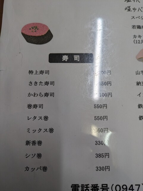 大分に帰る時に必ず通る201号線。香春町の立ち食いうどんの側にある「さきた」さん❗居酒屋メニューや一品料理、寿司などが結構、リーズナブルに頂ける…