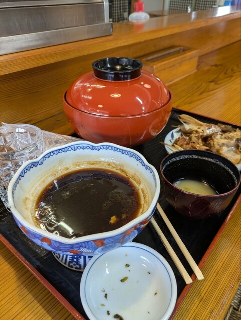 そうすると女将さんが来たので、アラ煮の温め直しとうな玉丼を注文❗️
