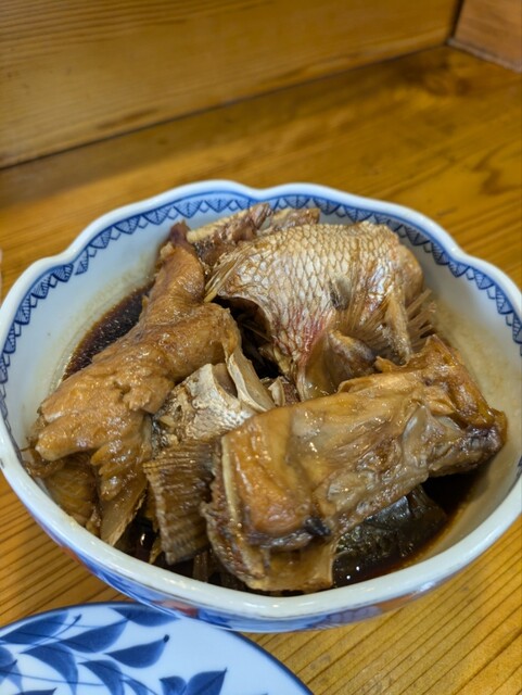 先ずはアラ煮が到着❗️キレイにウロコが取られており、九州醤油の甘さの真鯛の脂が相まった美味さ絶妙な匙加減 あああ車の運転でなければ酒飲むのにと思いつつ舌鼓❗️