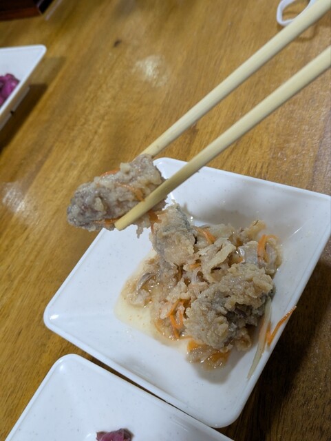 御口直しにアジの南蛮漬け、よく酢に浸かっていて骨まで美味しい❗️