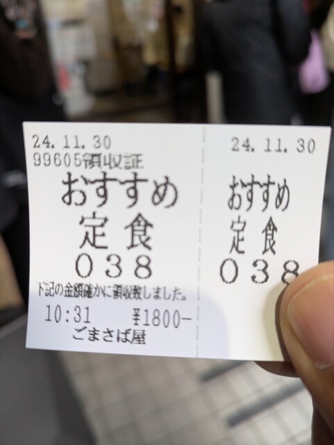 開店10分後に到着⋯既に店内は満員、店外も10組の行列⋯入店前に発券機で「本日の丼とトロゴマサバ定食」1800円を購入⋯