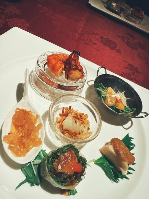 メニューは洗練されており、どの料理も丁寧に調理されていました。特に印象に残ったのは、ジューシーで柔らかい牛ヒレ肉のステーキと、海老の炒め物でした。ズワイ蟹入りのふかひれスープは濃厚でありながらも繊細な味わいで、特に記憶に残る一品でした。デザートの盛り合わせも様々な味が楽しめる内容で、食事の締めくくりにふさわしいものでした。