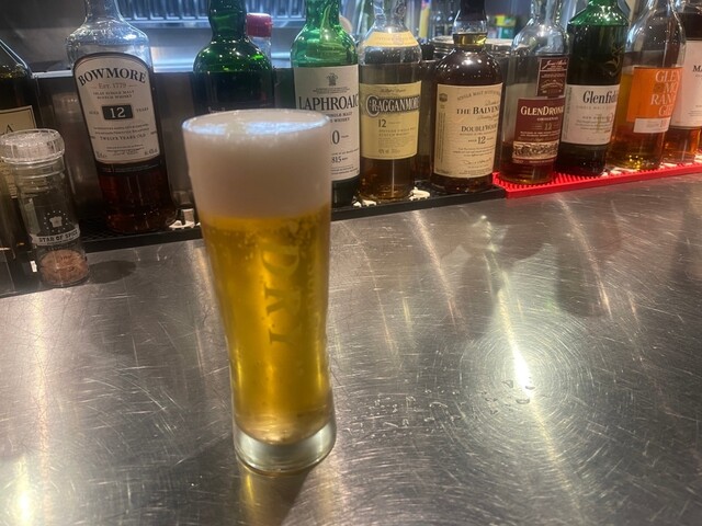 自分はカウンター席でしたが、カウンターは素材がステンレス??で奥行きがあり、しかも目の前には趣味の良いスコッチシングルモルトウイスキーなどがずらり、、、