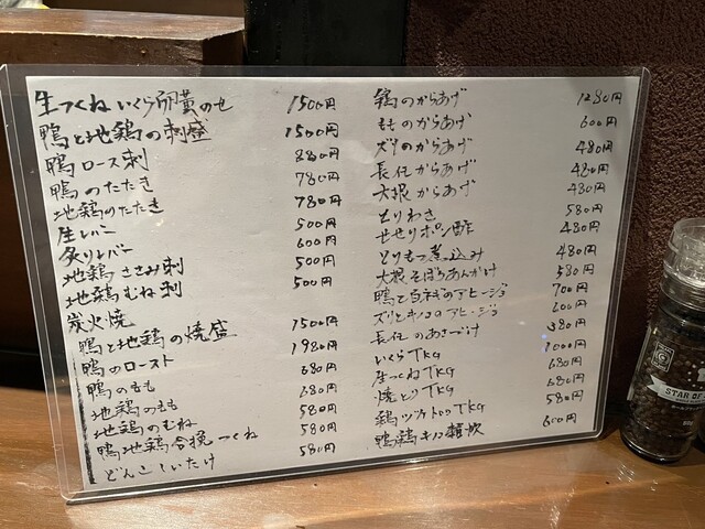 料理は鴨と地鶏系のラインナップで、生物、炭火焼き、揚げ物がメイン。