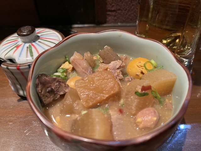 注文は鴨と白ネギのアヒージョ、鴨と地鶏のつくね、鶏ホルモン煮込みを。