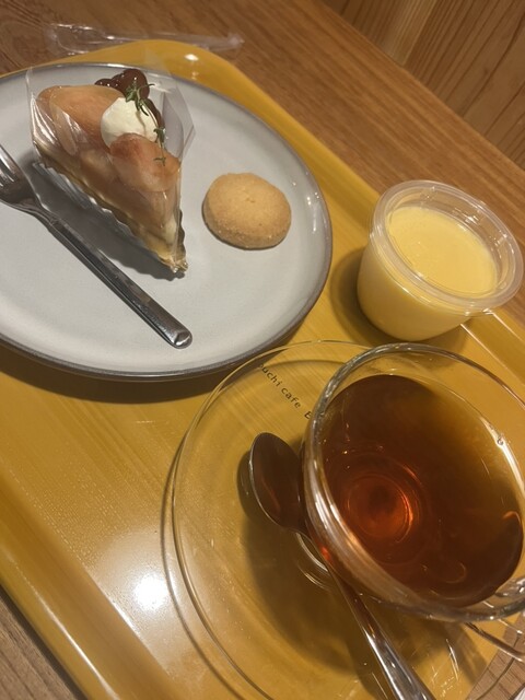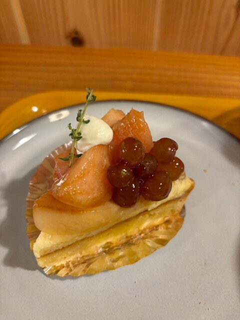 残っていた桃とぶどうのタルトとアールグレイのセットを注文したら