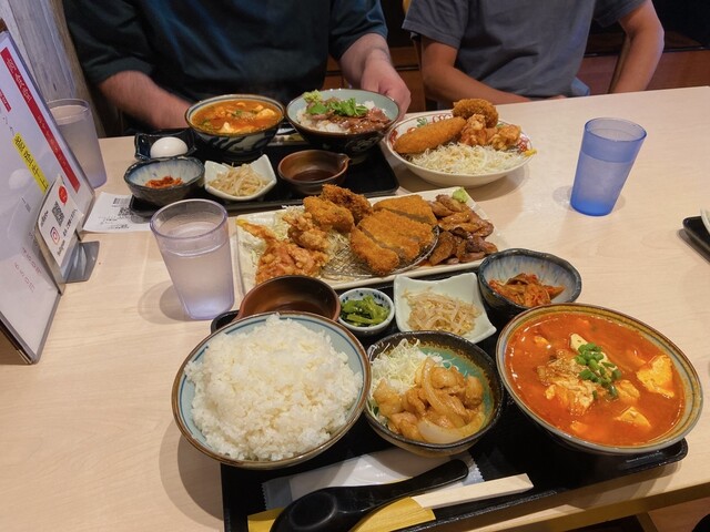 4人共、+300円でみそ汁をスンドゥブチゲに変更