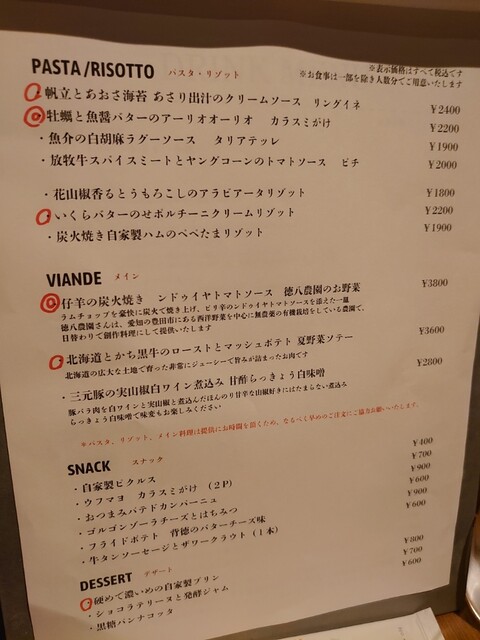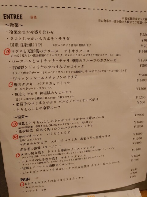 ボトルワインを頼んだので、少し単価高めになりましたが、料理はお値打ちだと思います。