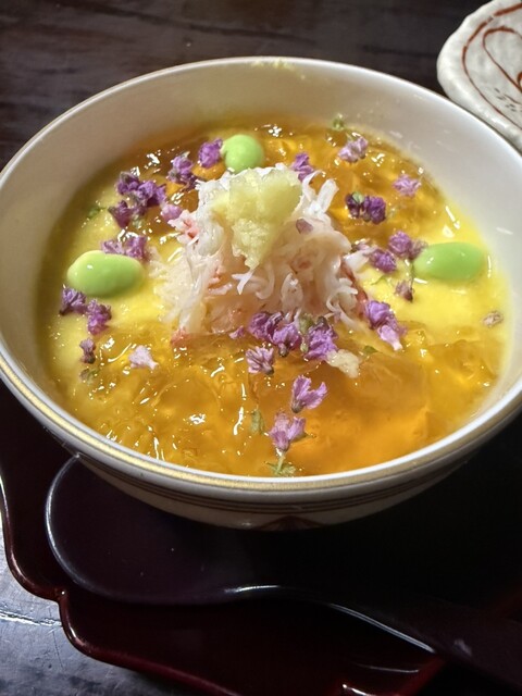 一皿一皿、丁寧に仕立てられ美しいお皿に盛られ、ボリュームもあるので、お造りを食べた段階で...