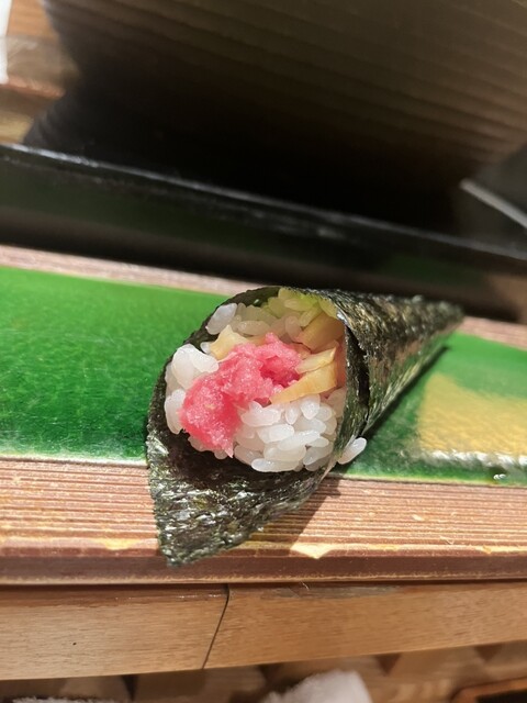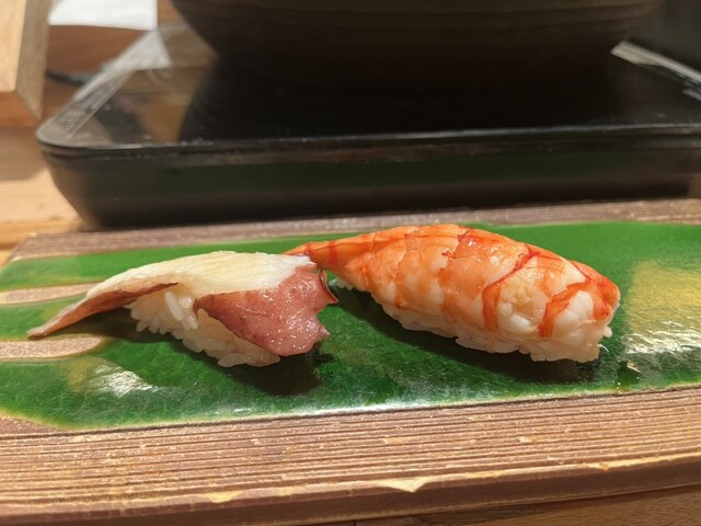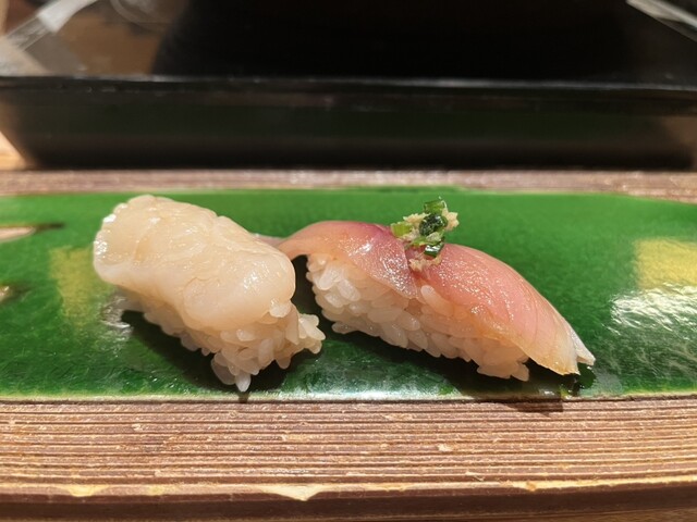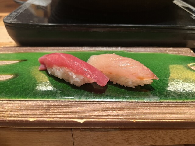 平日ランチコースがとってもコスパが良く美味しいお店。前回13:00すぎに伺ったらもう入店できなかったので今回は11:30すぎに訪問。店前には並んでいるお客さんゼロ。待ち時間15分くらいで1巡目のお客さんが出て来た。まるで夜みたいな雰囲気の良い店内。このお値段で目の前で握ってくれるのもうれしい。10貫の握りはどれも丁寧な仕事が伺えるお寿司ばかり。いくらが苦手だと伝えるとホタテに変更してくれた。初回訪問時に衝撃を受けた漬けマグロがどうしても食べたかったので追加注文。やっぱり美味しい!いつ来ても大満足なランチを頂けるお気に入りのお店。