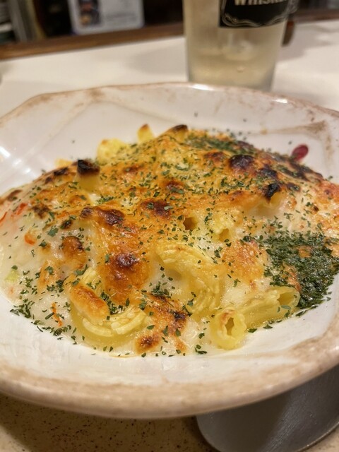 常連さん発案のハムチーズトーストとグラタンとナッツを注文