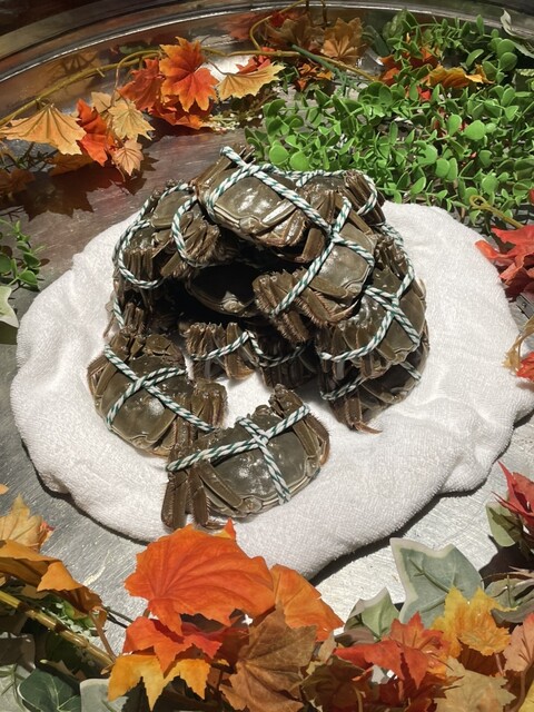 入り口付近には生きた蟹やら海老が展示されていた