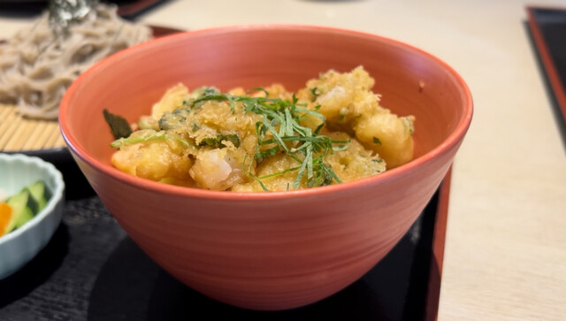 かき揚げの盛られたご飯は「蕎麦つゆ+そば湯」をミックスしてぶっ込む。