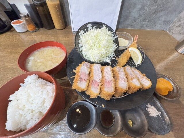 認定山形豚リブロース(200g)+エビフライ(\2,250)