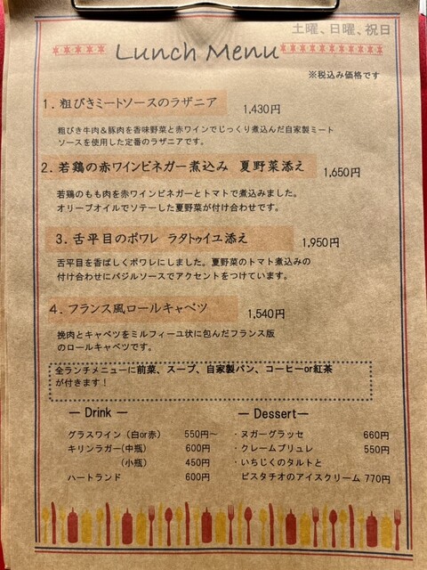 姫路駅近くのビルの地下に素敵なビストロを発見しました。カウンター6席、テーブル4席が最大人数という小さなお店です。店主が穏やかな空気感でお迎えしてくれます。ランチはラザニア 1,430円からでとてもリーズナブル。今回選んだのはフランス風だというロールキャベツにしてみました。お肉とキャベツがミルフィーユ状になっているのがフランス風なんだとか。