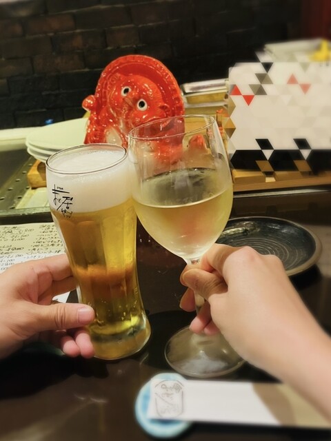 先ずは、Takaクシーはビール✨私は白ワイン✨