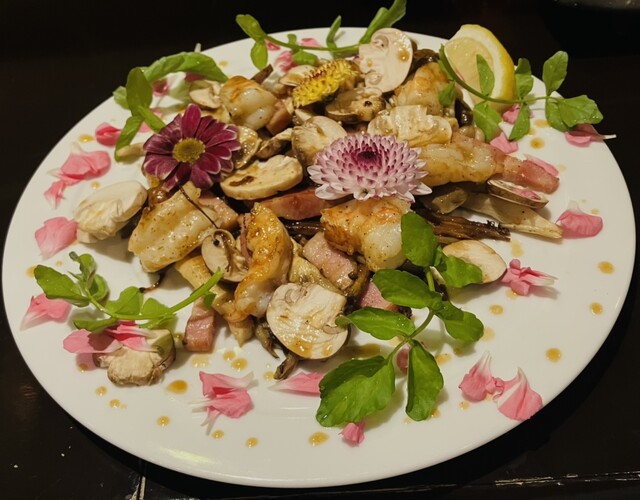 一生に一度は、戴いて見たかった「まど居」のウニホーレン✨そしてコーネ刺し✨更に感動したのがキノコソテー(Takaクシーオリジナルスペシャル海老プラスで)が美しくとても美味しかった✩⋆*॰¨̮⋆。˚(⸝⸝⸝ᵒ̴̶̷ωᵒ̴̶̷(⸝⸝ᵒ̴̶̷ωᵒ̴̶̷⸝⸝⸝)✩⋆*॰¨̮⋆。˚食用菊まで完食した私でした(///ω///)ボッwww✨