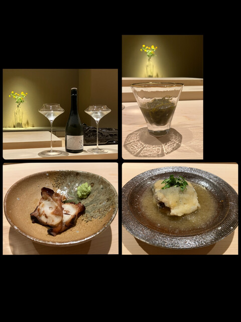 ワンオペながら、焦らずしっかりと向き合って下さるその姿は年齢を感じさせない落ち着きと貫禄✩⋆*॰¨̮⋆。˚ドリンク提供もどれも素晴らしい酒器とペアリングを好みに合わせて下さる所もお見事✩⋆*॰¨̮⋆。˚✨✨