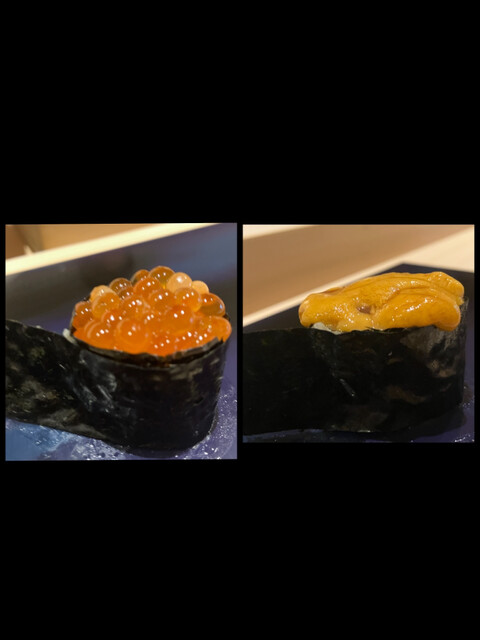いくら2色軍艦✨ 白いクラ入で食感の違いが楽しめます✨ 北海道 雲丹軍艦✨