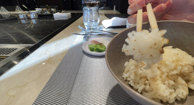 全部焼いた後に、シェフが鉄板を擦って掃除していた姿を見て、