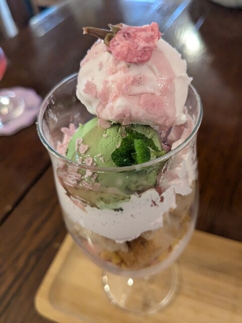 桜と菜の花の競演の後は、季節のスイーツでティータイム。