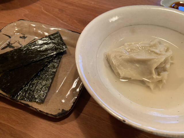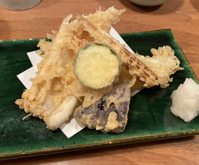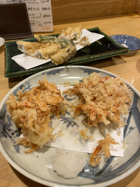本日の突き出しは穴子煮。定番の焼き海苔のほか、タコぶつや旬の牡蠣の天ぷら等を頂き、せいろで締めました。