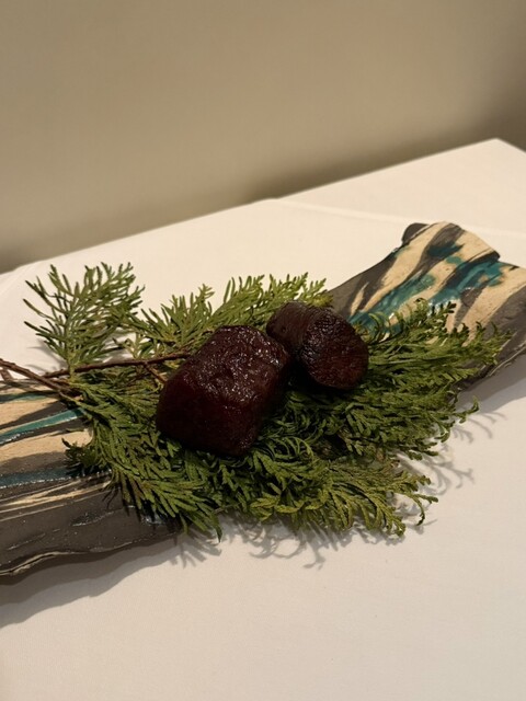 圧倒的な料理のビジュアルとツキノワグマや信州鹿、モリーユ茸など使っている食材にもこだわり、驚きと感動を与えられた食事でした。