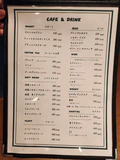 ドリンク、デザートメニュー