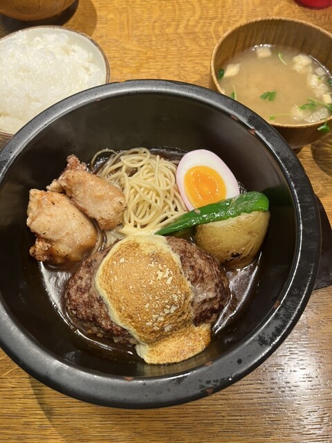 写真は期間限定メニューのごぼうを使ったハンバーグと山本のハンバーグ!