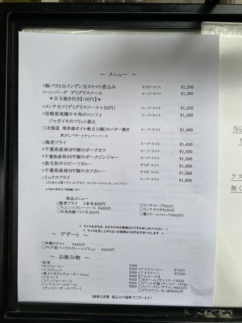 ポークジンジャーは厚みが2センチくらいで、びっくりするボリュームで半分でお腹いっぱいになってしまって「お持ち帰りできますか?」と聞いてしまいました。思ったとおり、丁重にお断りされました。頑張って完食しましたが、次回は欲張りすぎず、違うメニューでシェアしようね!と話しました。会計は、1人当たり2,000円でした。