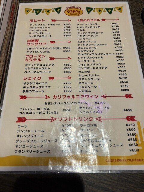 ドリンクメニュー