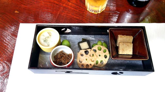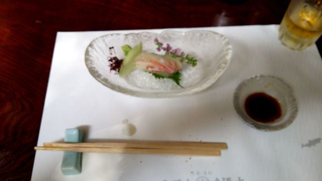 コースの注文は、前菜、お造り、焼魚、素麺、揚物、酢物、ご飯、デザートの八品。