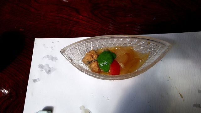 前菜の未熟な桃の実は初めての紹介を受け、青い小さな実を、恐る恐る口に運ぶとこれが美味しい。噛みごたえは梅に近い食感だが、口のなかに広がる風味は桃。