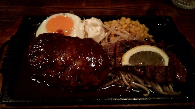 肉汁たっぷりのハンバーグと和牛ステーキが運ばれて早速堪能、めちゃくちゃうま~い。