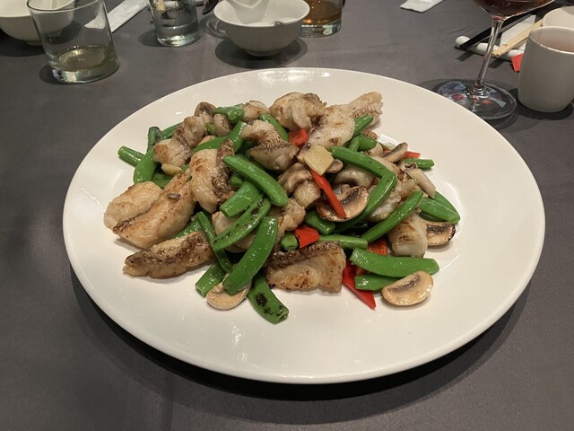 鯛の鯛あれば班の斑あり。胡椒炒斑球こそ料理長の腕の見せ所である。炒め物の真髄とは、如何に最小限に油を引きながらも最大限の火力で食材に焦香を刻み込むこと。