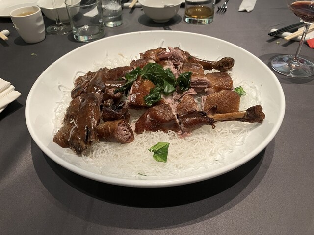 晩餐の始まりはRachmaninoffのピアノ協奏曲第二番と同じく、静まりから一歩一歩近づく。幾つかの前菜で味蕾をくすぐったところ、いきなり美食の怒涛が襲いかかる。その勢いが凄まじくて、〆の煲仔飯まで一気に受け止めなければならない。ペダルを踏みっぱなしのように味の余韻が混ざり合う。