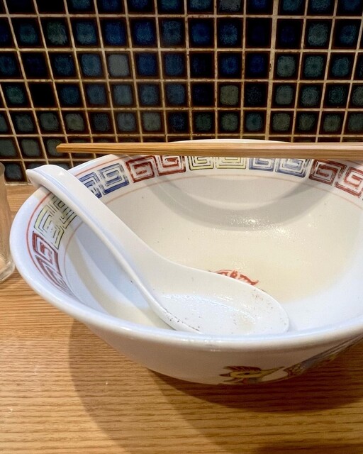 大好きなどんぶりで、定番の味玉中華そば、美味しい!