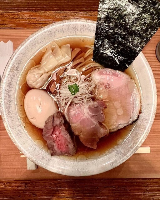 →味玉、黒豚ワンタン、海苔増し、和牛ミスジチャーシュー