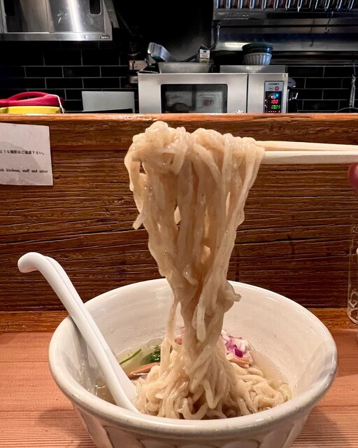 塩は、加水率高めの平打ち中細麺、この麺好き先掛けの麺との違いも楽しめました