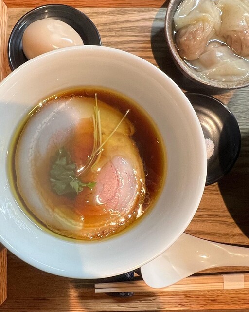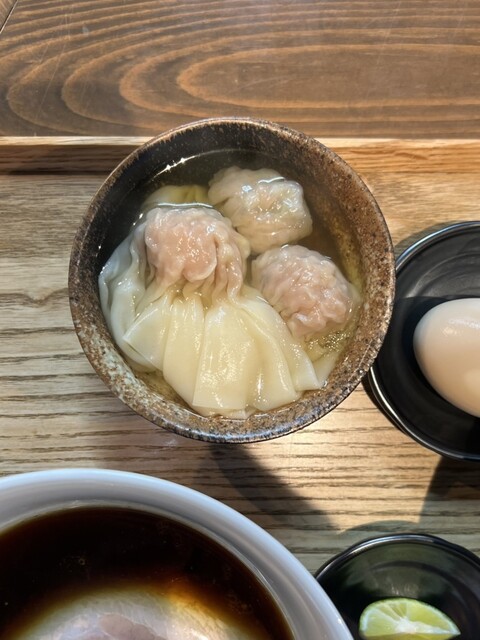 TPに黒豚わんたん→てるてる坊主のきれいなわんたん。ここにきたらわんたんは外せません。味玉も黄身きれいでした味付けも抜群です。