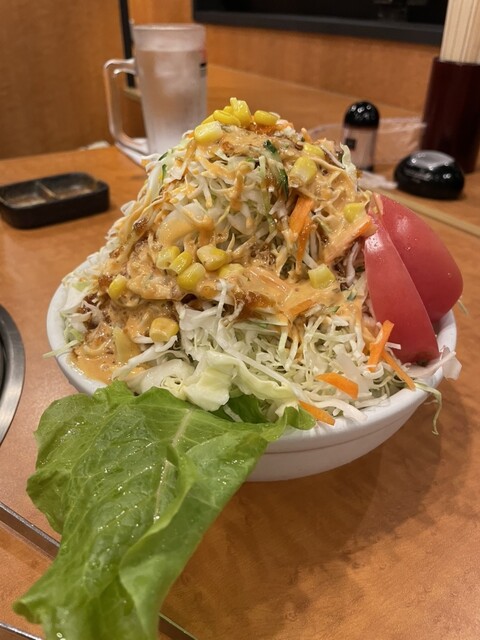 切れ端タン1ライス大1ライス普1ワカメスープ1ざんまいサラダ半分キムチの盛り合わせ1こんなもんでした。腹いっぱい食べたので満腹満足でした。