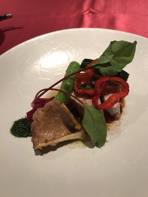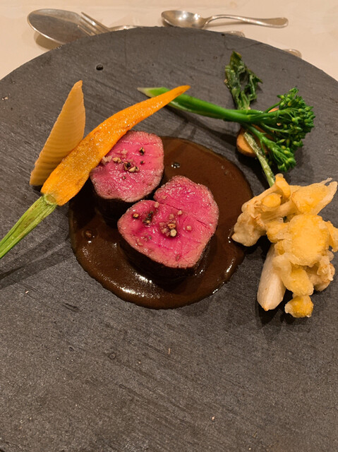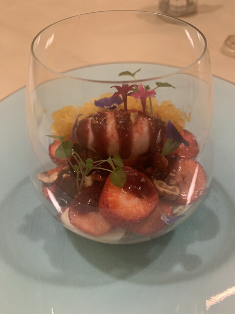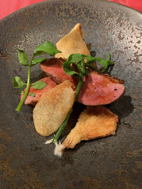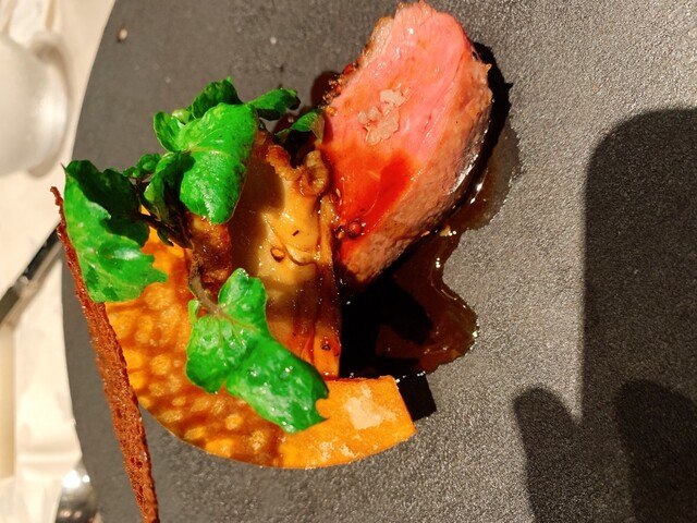 赤ワインのソースで引き締まり、パッションフルーツの氷が超いいアクセントになっていました。