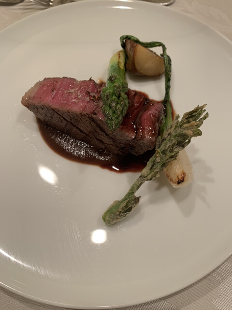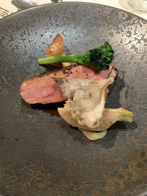 ジビエの鹿肉、さくらんぼのデザート、はぁ、最高。