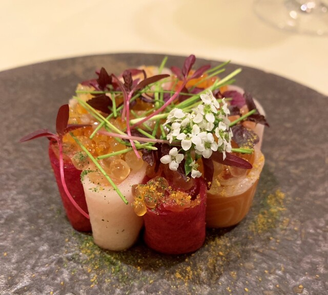 2品目はお花の様にドレッセされましたサーモンと大根。ワードが陳腐ですがお許しを。お料理はとても上品です。