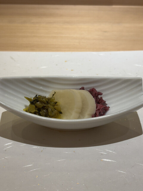 温物では茶碗蒸しに加え、和牛すきしゃぶ風、佐賀牛サーロインの鍋しゃぶが提供され、鮨屋としては意外性のある内容ながら、口の中を程よくリセットしてくれる役割を果たしていました。
