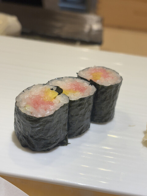 握りは赤身・中トロ・大トロをはじめ、穴子、海老、かんぱち、いか、巻物など。中でも穴子は驚くほど柔らかく、ネタとシャリのバランスの良さが印象的でした。